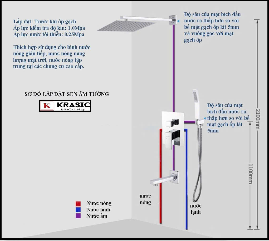 1. Tên sản phẩm : Sen tắm âm tường vuông Krasic K701